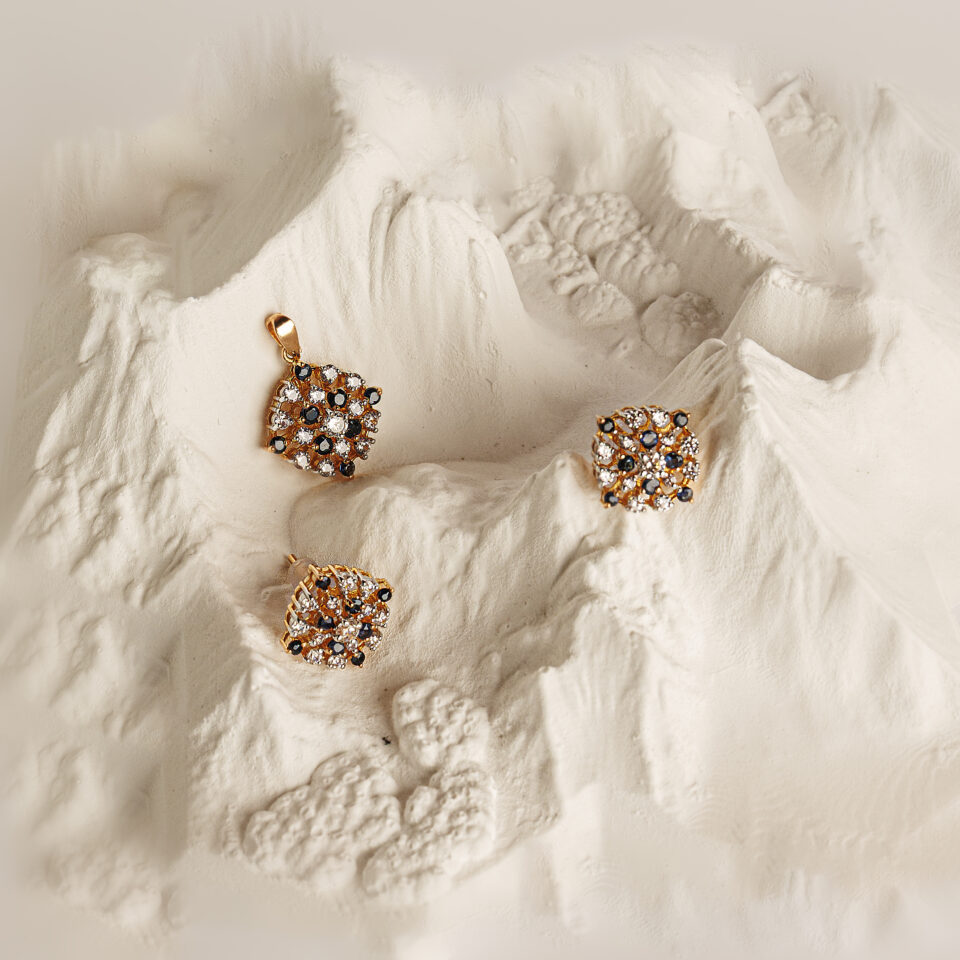 Elegant 21K Gold Sapphire Locket Set