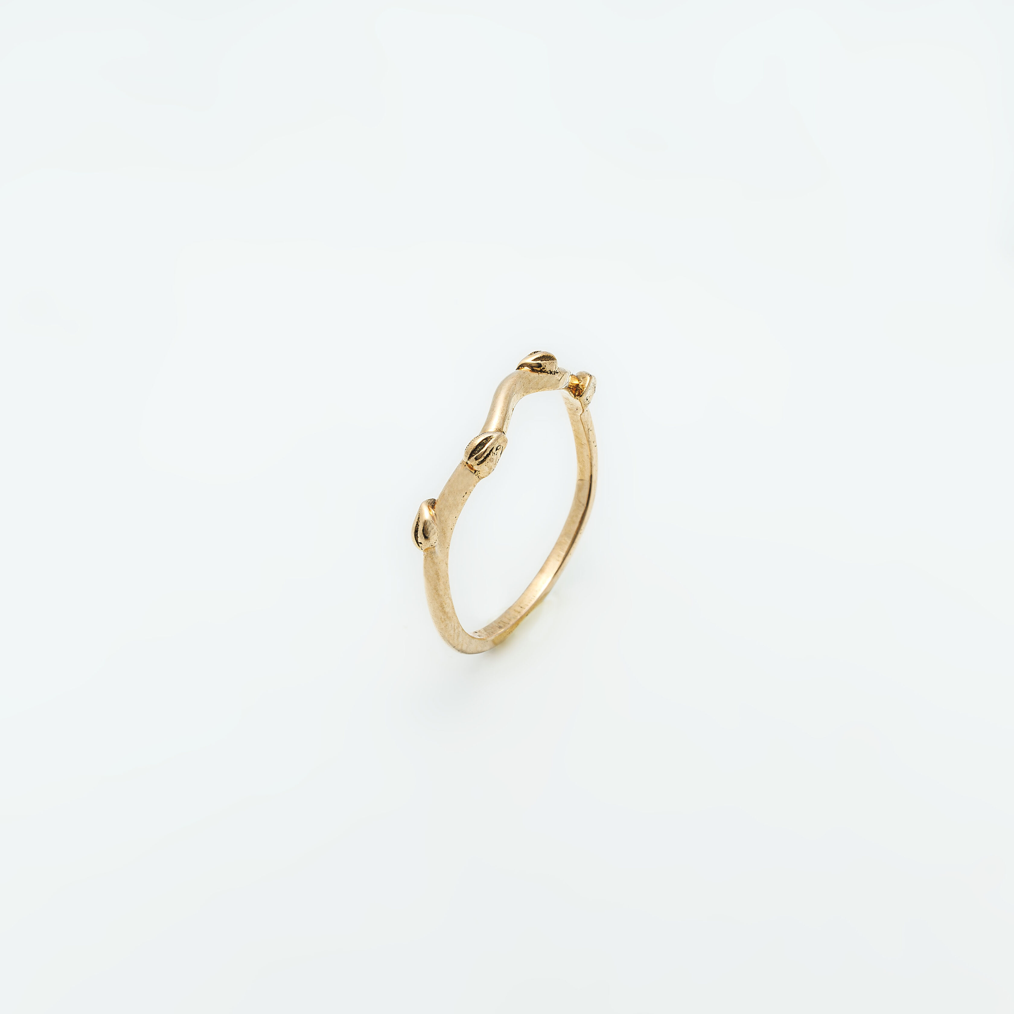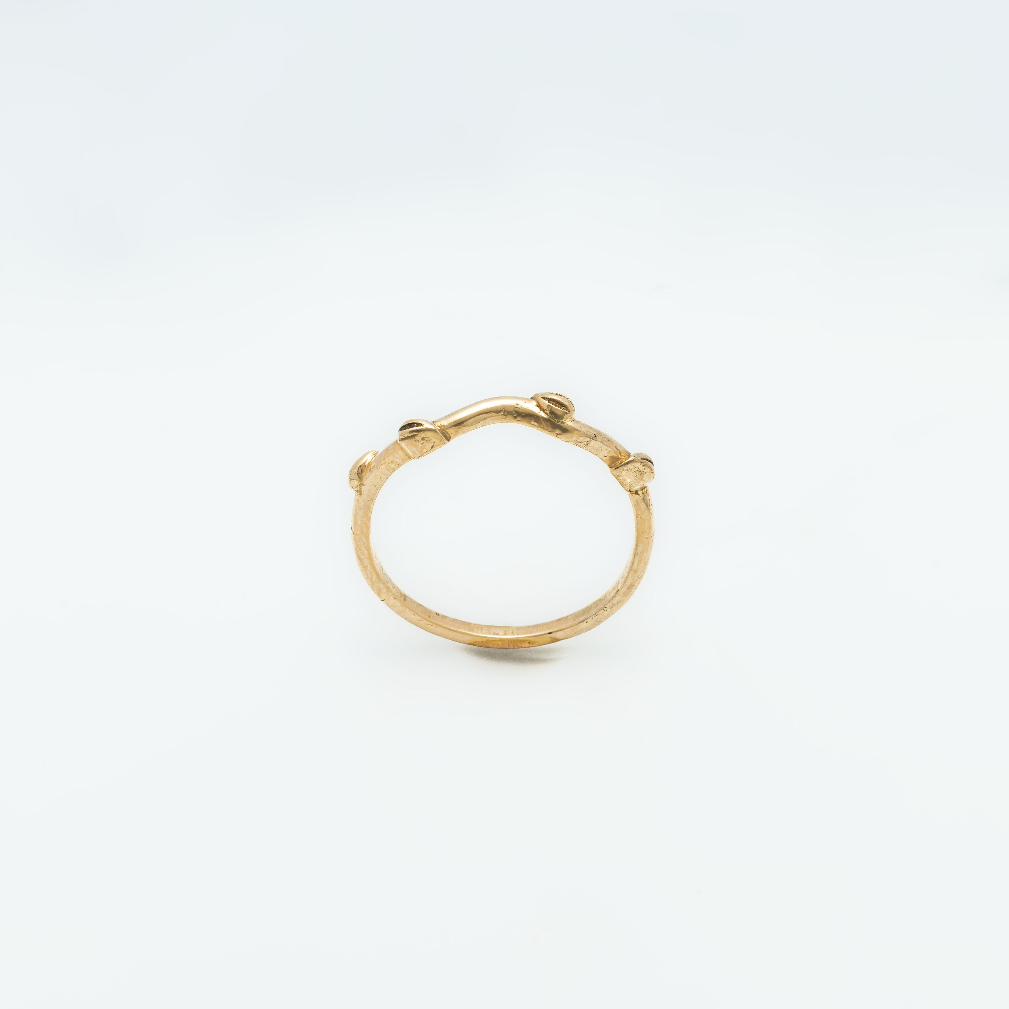 simple and minimalistic gold band with leaves embossed on the top.